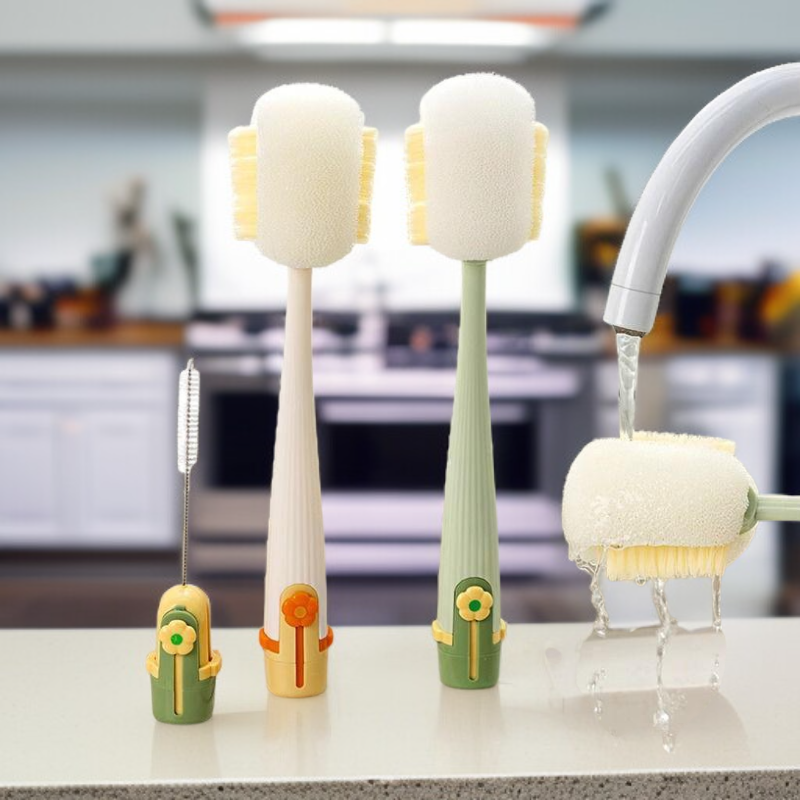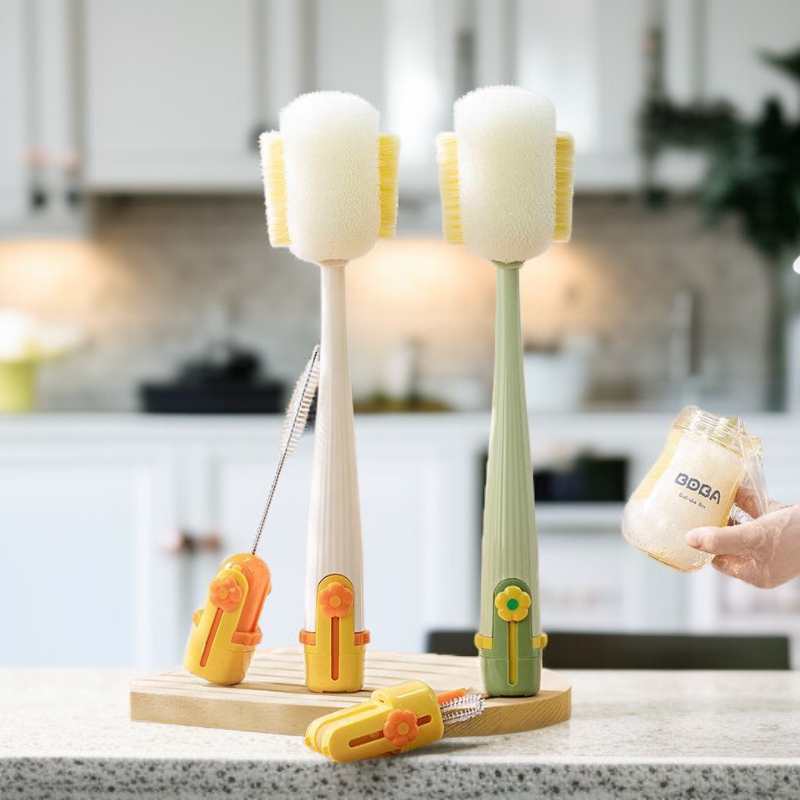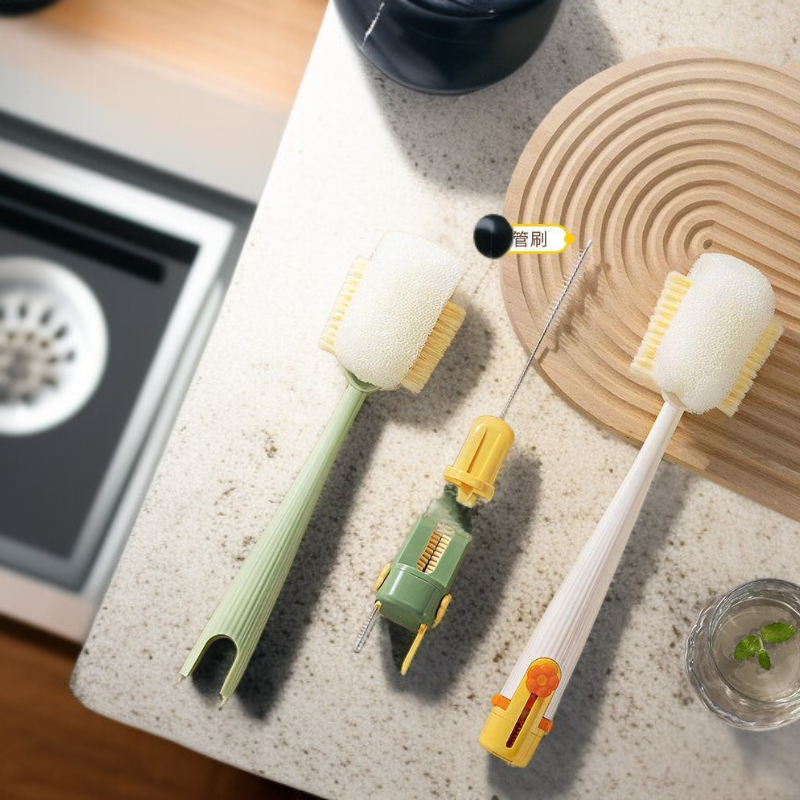 ● Brosse multifonction 5-en-1 idéale pour nettoyer en profondeur bouteilles, gobelets, pailles, couvercles et biberons, assurant une hygiène parfaite pour toute la famille.