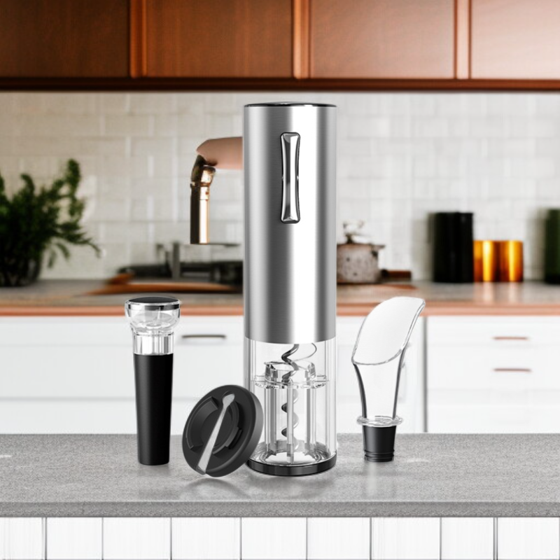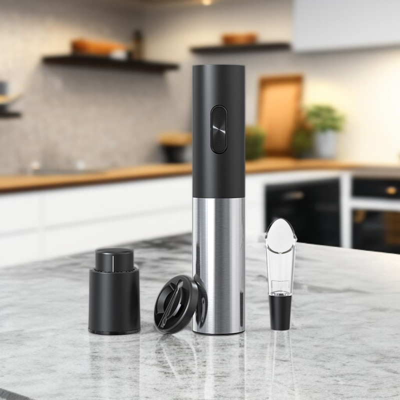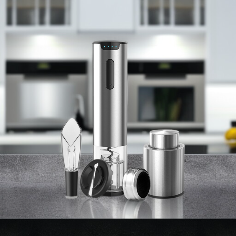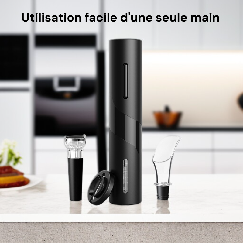 ● Ouvrez vos bouteilles de vin rouge en quelques secondes grâce à ce tire-bouchon électrique, pratique et sans effort, idéal pour toutes les occasions festives. ● Son design élégant et moderne en fait un coffret parfait à offrir ou à s’offrir, ajoutant une touche de sophistication à votre expérience œnologique. ● Batterie rechargeable longue durée et accessoires inclus (coupe-capsule, verseur, bouchon sous vide), pour une dégustation de vin complète et simplifiée à la maison. ● Facile à utiliser d’une seule main, ce tire-bouchon convient aussi bien aux amateurs qu’aux connaisseurs, garantissant une ouverture rapide et sans bris de bouchon.